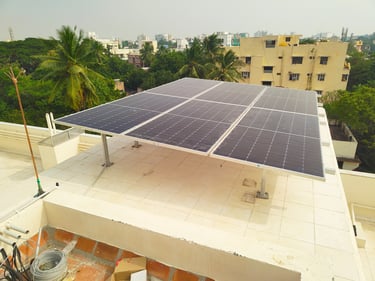 Solar Off Grid Power plant system is used to generate electrical energy for our daily electricity usage in our own place with 24 hours backup. Off Grid solar power plant is consist of PV modules, batteries and Power conditioning Unit. Over Here the energy generated by the Solar PV panel is used to run the load directly with the help of PCU which converts the DC to AC power during day hours and simultaneously the battery will be getting charged. The energy stored in the battery can be used to power the load during night time or when there is a power cut. The advanced MPPT inverters have the priority setting like Solar Only, Solar - Grid - Battery or Solar - Battery - Grid which will help to attain maximum solar power usage.