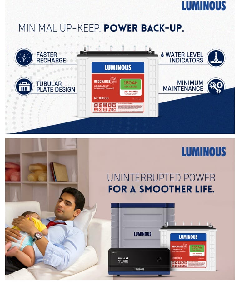 Ensure uninterrupted power supply for your home with the Luminous Inverter Battery Combo. Featuring a high-capacity 150Ah RedCharge battery, a reliable inverter, and a sturdy trolley, this set guarantees long-lasting backup, low maintenance, and easy mobility. Ideal for households looking for a dependable and efficient power backup system.